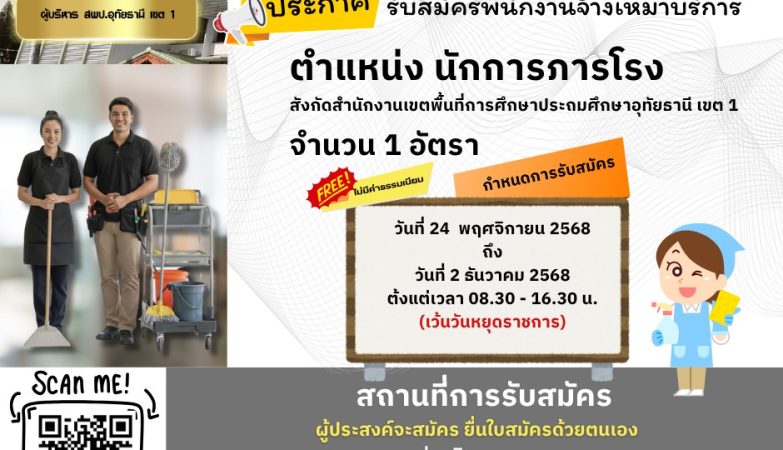 ประกาศรับสมัครนักการภารโรง จำนวน 1 อัตรา