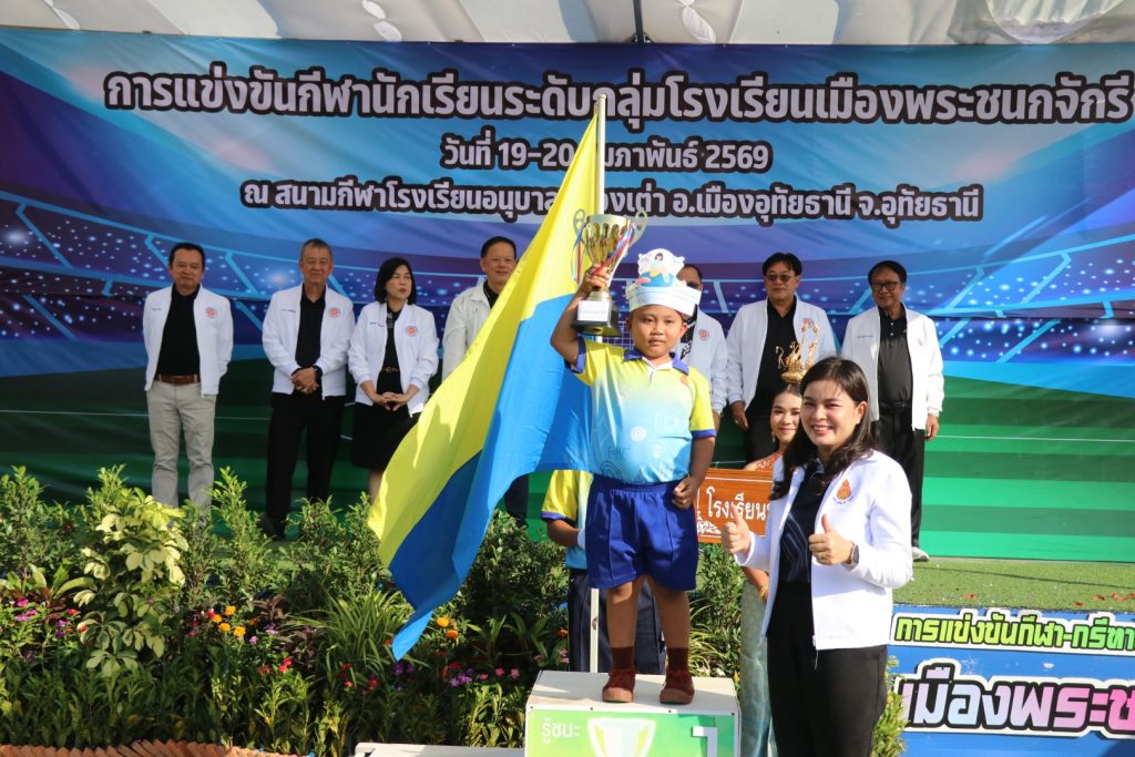 วันศุกร์ที่ 20 กุมภาพันธ์ พ.ศ.2569 ที่ สนามกีฬาโรงเรียนอนุบาลวัดหนองเต่า อำเภอเมือง จังหวัดอุทัยธานี ดร.กุลธิดา อ่อนมี ผู้อำนวยการสำนักงานเขตพื้นที่การศึกษาประถมศึกษาอุทัยธานี เขต 1 ให้เกียรติเป็นประธานในพิธีเปิดการแข่งขันกีฬา-กรีฑานักเรียน กลุ่มโรงเรียนเมืองพระชนกจักรี ภายใต้ชื่อ “พระชนกจักรีเกมส์” โดยมี นายอภิวัฒน์ สืบสาย ประธานกลุ่มโรงเรียนเมืองพระชนกจักรี และผู้อำนวยการโรงเรียนอนุบาลวัดหนองเต่า เป็นผู้กล่าวรายงาน พร้อมด้วยคณะผู้บริหารสถานศึกษา นายกองค์การบริหารส่วนตำบล แขกผู้มีเกียรติ และทัพนักกีฬาเข้าร่วมพิธีอย่างคับคั่ง