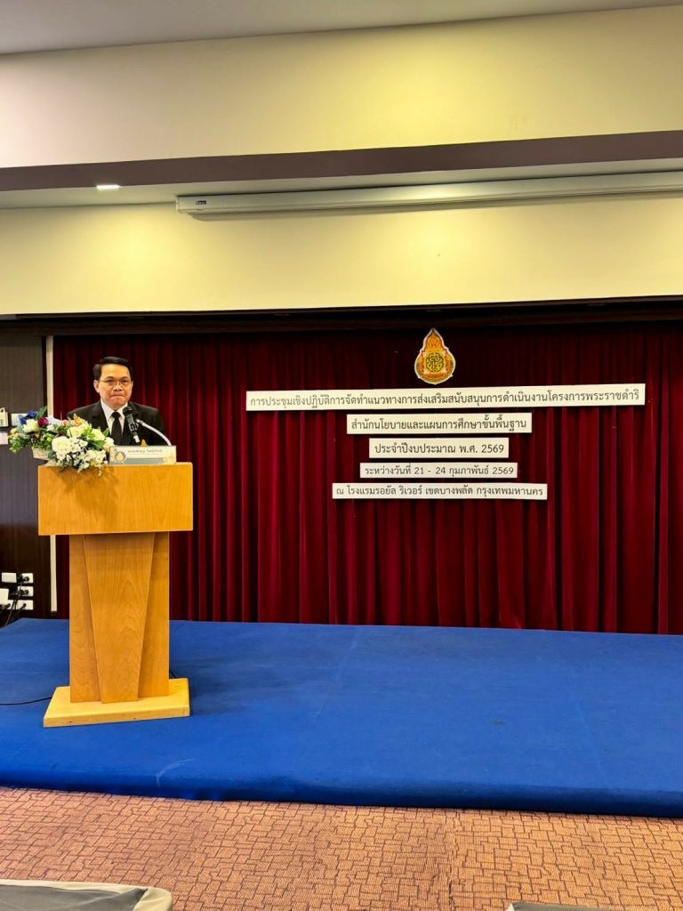 ดร.กุลธิดา อ่อนมี ผอ.สพป.อุทัยธานี เขต 1 มอบหมายให้ ดร.สมาพร ลี้ภัยรัตน์ รอง ผอ.สพป.อุทัยธานี เขต 1 พร้อมด้วยศึกษานิเทศก์ ร่วมการประชุมเชิงปฏิบัติการจัดทำแนวทางการส่งเสริมสนับสนุนการดำเนินงานโครงการพระราชดำริ ประจำปีงบประมาณ พ.ศ. 2569 ระหว่างวันที่ 21–24 กุมภาพันธ์ 2569 โดยมีนายพิเชฐ โพธิ์ภักดี เลขาธิการคณะกรรมการการศึกษาขั้นพื้นฐาน (เลขาธิการ กพฐ.) เป็นประธานในพิธีเปิด ณ โรงแรมรอยัล ริเวอร์ กรุงเทพมหานคร