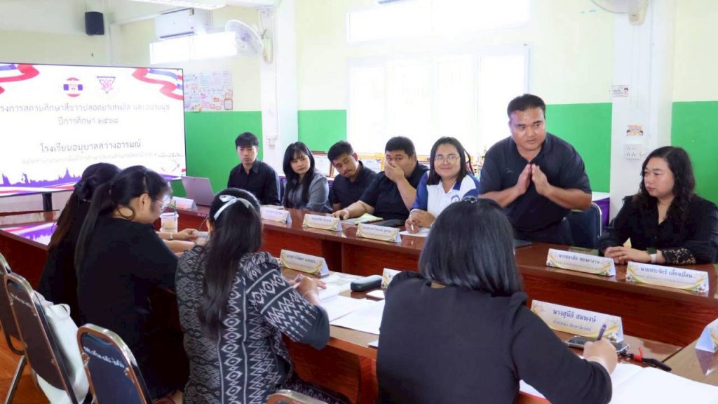 วันจันทร์ที่ 23 มีนาคม พ.ศ. 2569 ดร.กุลธิดา อ่อนมี ผู้อำนวยการสำนักงานเขตพื้นที่การศึกษาประถมศึกษาอุทัยธานี เขต 1 มอบหมายให้ นายพัลลภ สุ่มสกุล รองผู้อำนวยการสำนักงานเขตพื้นที่การศึกษาประถมศึกษาอุทัยธานี เขต 1 เป็นประธานคณะกรรมการ พร้อมด้วยศึกษานิเทศก์และคณะกรรมการที่ได้รับการแต่งตั้ง ลงพื้นที่ตรวจประเมินโครงการสถานศึกษาสีขาว ปลอดยาเสพติดและอบายมุข