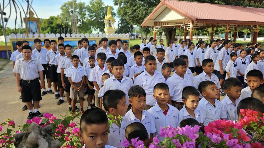 นางสาวณัฐฐิรา มากมี ผู้อำนวยการโรงเรียนบ้านวังเกษตร รักษาการในตำแหน่ง ผู้อำนวยการโรงเรียนบ้านคลองข่อย คณะครูและบุคลากรทางการศึกษา โรงเรียนบ้านคลองข่อย ร่วมพิธีวางพวงมาลาเนื่องในวันคล้ายวันสวรรคต พระบาทสมเด็จพระบรมชนกาธิเบศร มหาภูมิพลอดุลยเดชมหาราช บรมนาถบพิตร วันแห่งการรำลึกถึงพระมหากรุณาธิคุณของมหาราชผู้ยิ่งใหญ่ รัชกาลที่ 9