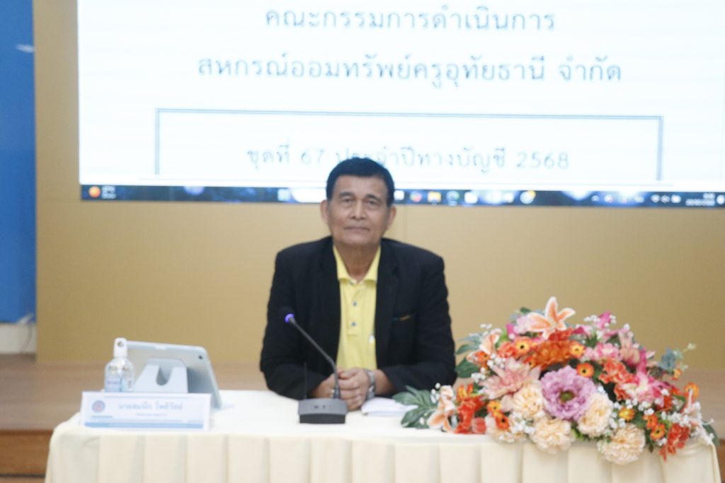 วันจันทร์ที่ 20 ตุลาคม พ.ศ. 2568 ดร.กุลธิดา อ่อนมี ผอ.สพป.อุทัยธานี เขต 1 ร่วมประชุมคณะกรรมการดำเนินการสหกรณ์ออมทรัพย์ครูอุทัยธานี จำกัด ชุดที่ 67 ประจำปีทางบัญชี 2568 ในฐานะผู้ประสานงาน โดยมีนายสมนึก โพธิวัลย์ ประธานกรรมกร เป็นประธานยการประชุม ณ ห้องประชุมสหกรณ์ออมทรัพย์ครูอุทัยธานี จำกัด อ.เมืองอุทัยธานี