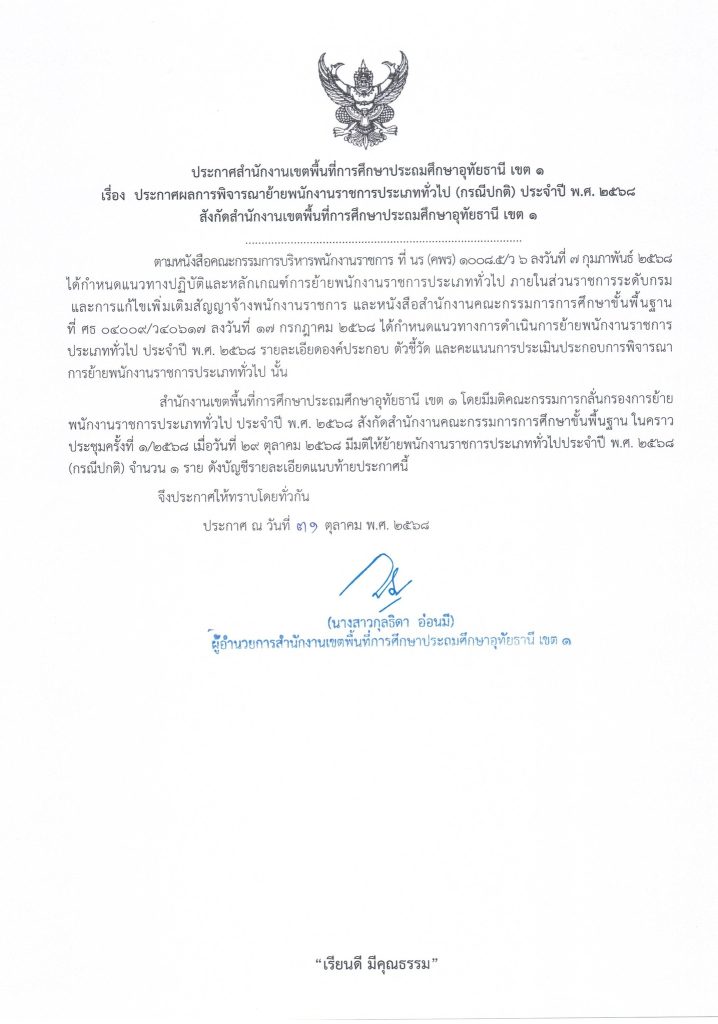 ประกาศผลการพิจารณาย้ายพนักงานราชการประเภททั่วไป (กรณีปกติ) ประจำปี พ.ศ. ๒๕๖๘ การบริหารงานบุคคล 31 ตุลาคม 202531 ตุลาคม 2025 ประกาศสำนักงานเขตพื้นที่การศึกษาประถมศึกษาอุทัยธานี เขต ๑ เรื่อง ประกาศผลการพิจารณาย้ายพนักงานราชการประเภททั่วไป (กรณีปกติ) ประจำปี พ.พ.ศ. ๒๕๖๘ สังกัดสำนักงานเขตพื้นที่การศึกษาประถมศึกษาอุทัยธานี เขต ๑ Share Facebook Twitter Pinterest Linkedin